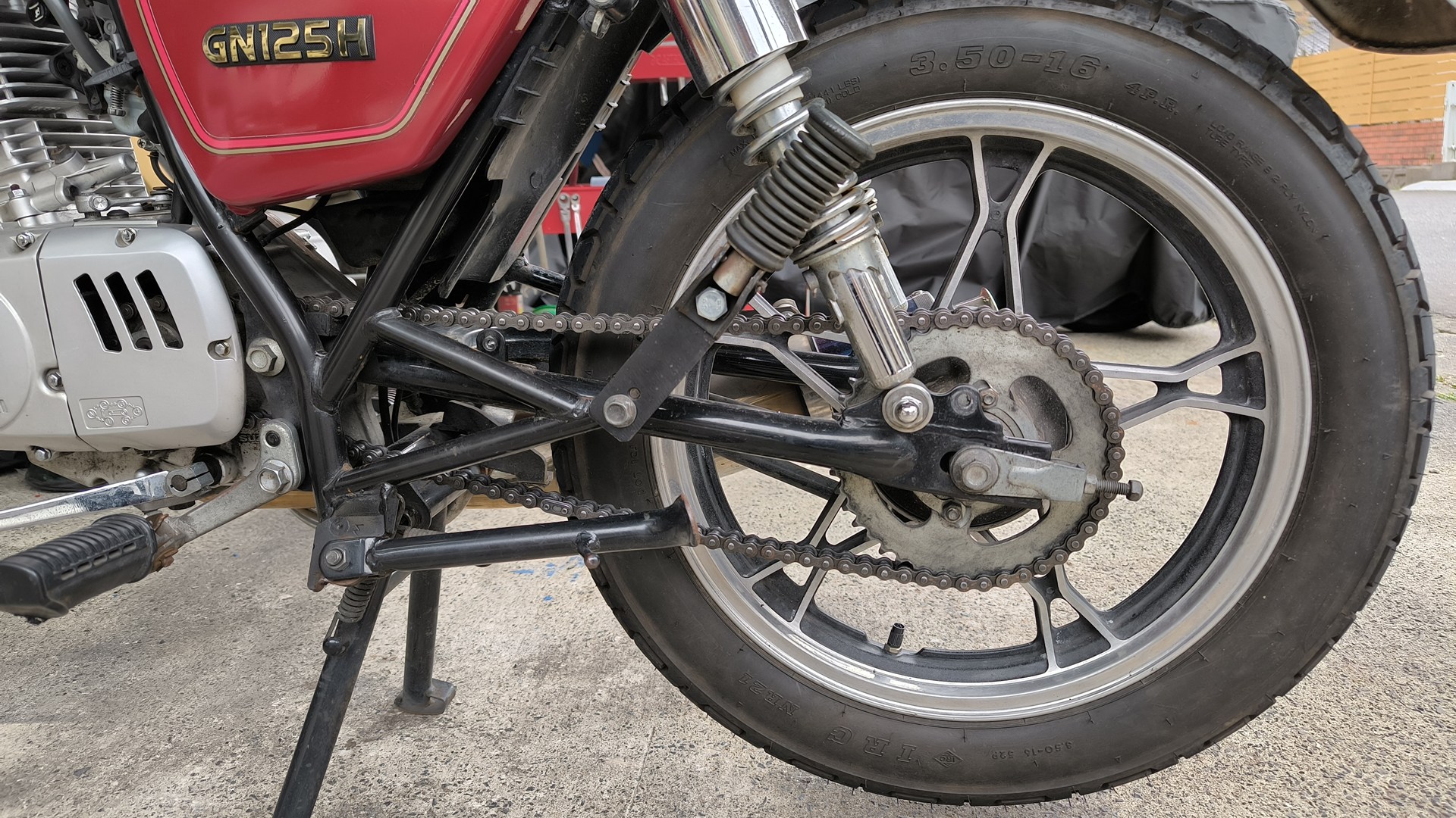 今回はGN125Hのチェーンの張り調整について紹介します。